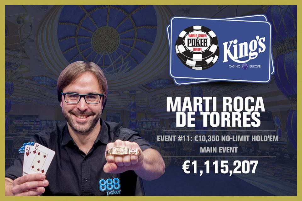 Вот и определился победитель Main Event WSOPE 2017 – им стал покерист из Испании Марти Рока де Торрес. Он занял первое место в ивенте и выиграл приз в размере €1 115 207. Это его самая крупная победа. На счету у Марти не так много призовых мест, вот почему его копилка выигрышей составляла до победы в Главном событии всего 30 000 долларов. Сам же игрок не стал рисковать крупными суммами, вот почему отобрался на WSOP через один из сателлитов.