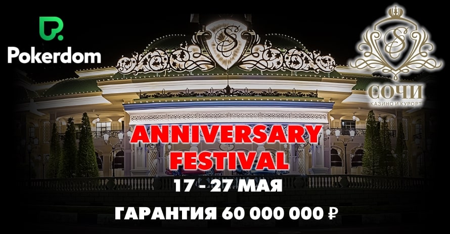 Покерная комната Покердом празднует пятилетнюю годовщину в этом году. В честь этого праздника администрация комнаты организует фестиваль, который пройдет в Сочи с 17 по 27 мая. Серию примет казино Красная поляна. Организаторы запланировали большое количество событий, которые подойдут всем любителям покера. Будут проведены турниры по безлимитному Холдему, Омахе и Китайскому покеру. А призовая гарантия будет свыше 60 000 000 рублей.